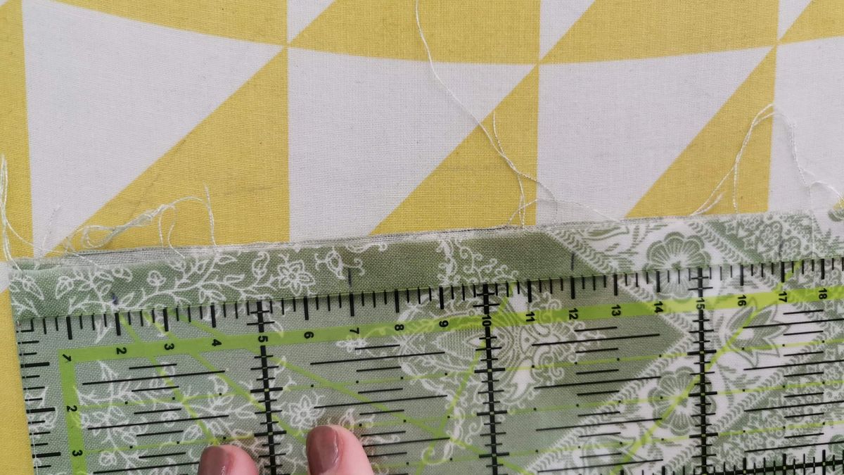 These are our folding marks. Hold the fabric on each side at 7cm / 2.75in and fold it over the marks at 2cm / 0.8in from the edge.